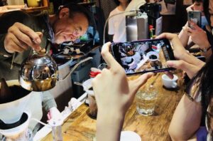 松屋式珈琲抽出のデモをまじかでみることができます。抽出された珈琲の試飲ができます。