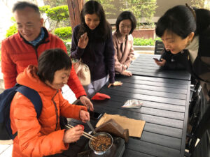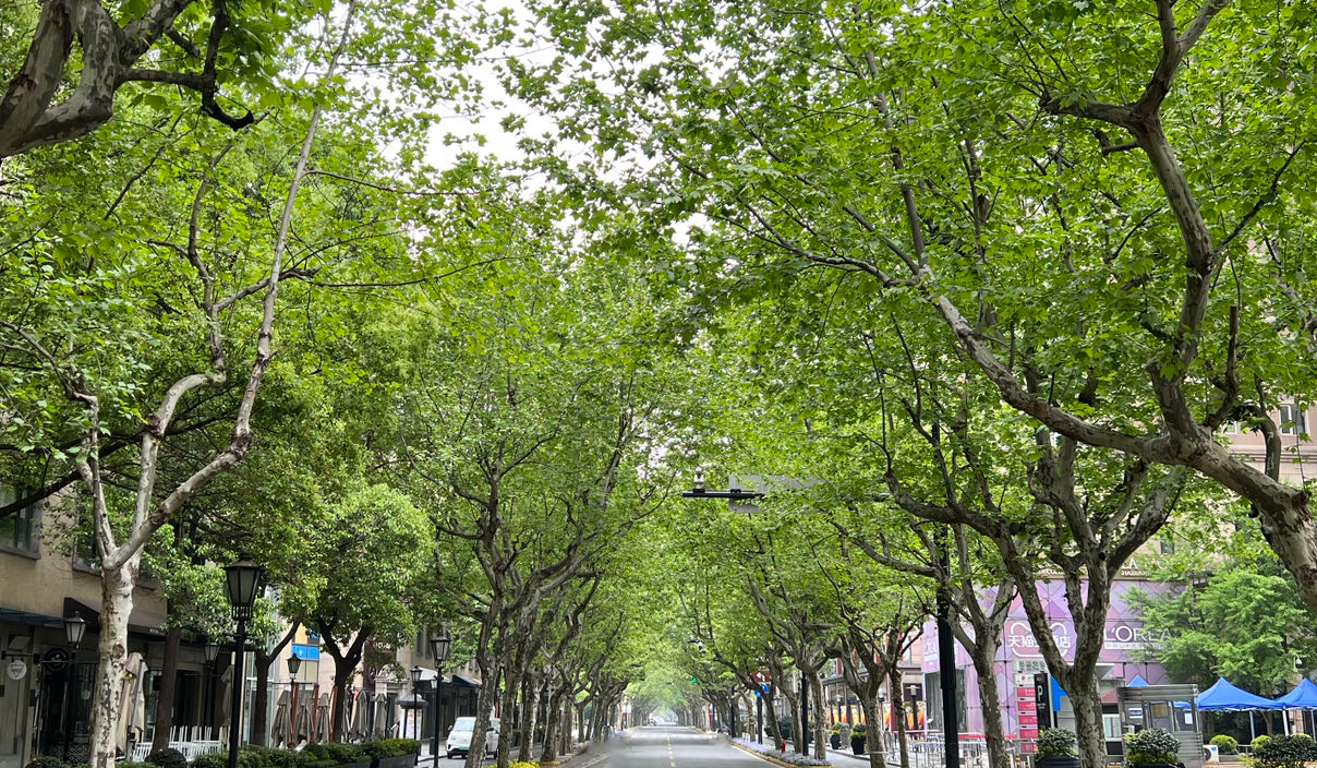 私が生まれて育った上海では、ぷらたなすの木は一般的な歩道樹です。私の生活の街区で、道の両側には、ぷらたなすの木が並んで植えられています。春になると、花が咲き、夏には、強い日差しを遮断すます。秋には路上に枯葉がいっぱいに敷き詰められ、冬が近づいている気配をもたらします。季節感のない上海では、ぷらたなすは、自然に近づき、四季を感じる私の媒介です。